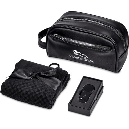 An Alex Varga golf tool and towel are packaged in an Alex Varga toiletry bag, to create an elegant set which is especially suitable for gifts or prizes at a golf day or event.