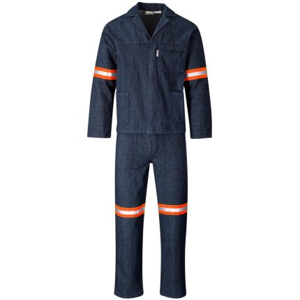 Vintage 100% Cotton Denim Conti Suit – Reflective Arms, Legs & Back – Orange Tape
