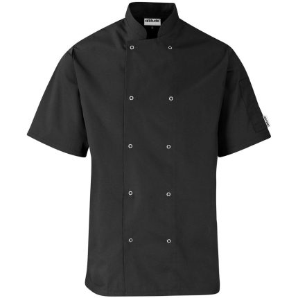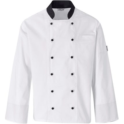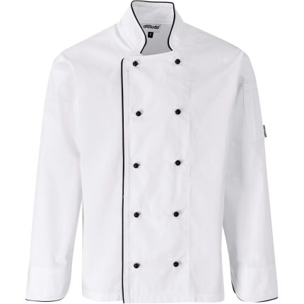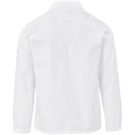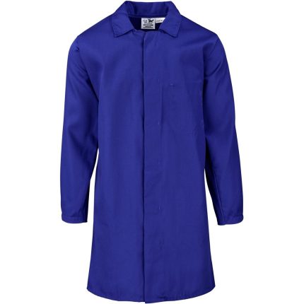 Double breasted with press studs. Thermometer sleeve pocket. Locally manufactured.
