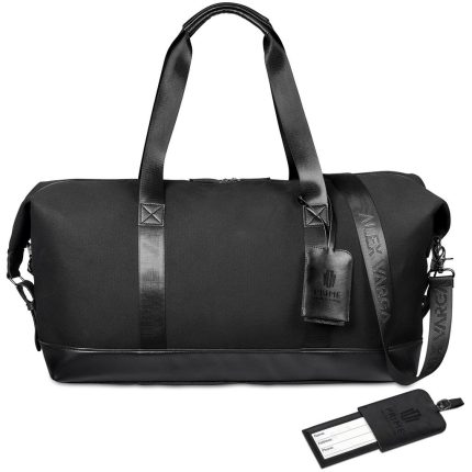 Hit the road in style with this deep and spacious weekend bag. It’s made from strong and durable canvas material in a rich, deep black, and is finished off with safety belt-style handles and strap.