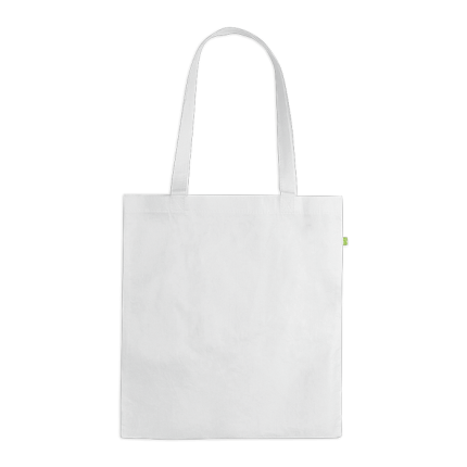 - 140g/m2. Stitched finish and long reinforced handles (70 x 2.5cm)