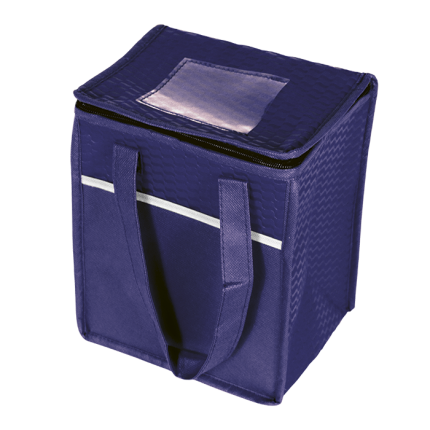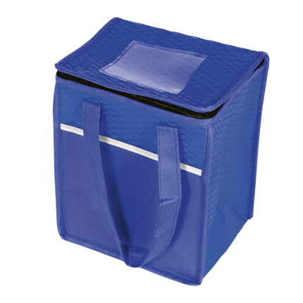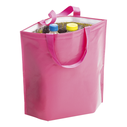 - Cooler bag in resistant non-woven with shiny laminated finish