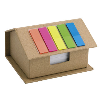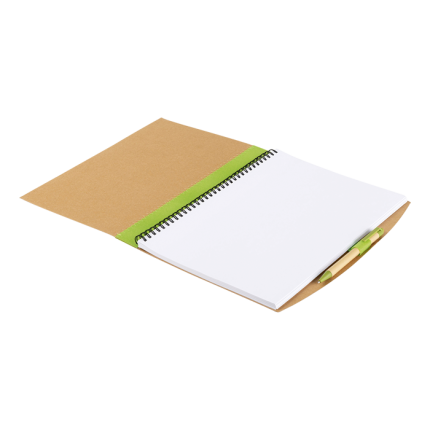 - Notepad with recycled cardboard covers and matching color, stitched finishing on side