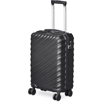 Cabin size luggage with hardshell structure. The matte diagonal design finish gives a fashionable edge to your luggage. Fitted with strong, durable, smooth-rolling, dual-carriage wheels.