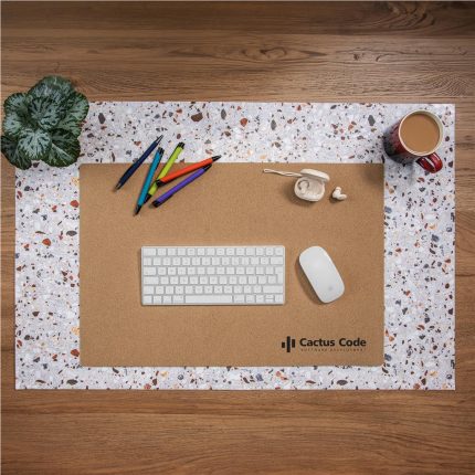 Give your workspace a makeover with this large desk pad, made partially from natural cork. Cork is a sustainable material that is easy to clean and naturally repels dust, hair, and particles.
