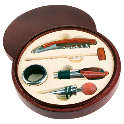 - Includes corkscrew with capsule cutter and opener, stopper, dispenser, drip stop and thermometer