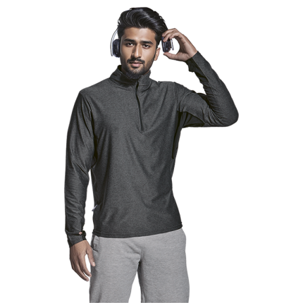 - Funnel collar with contrast quarter front zip opening
