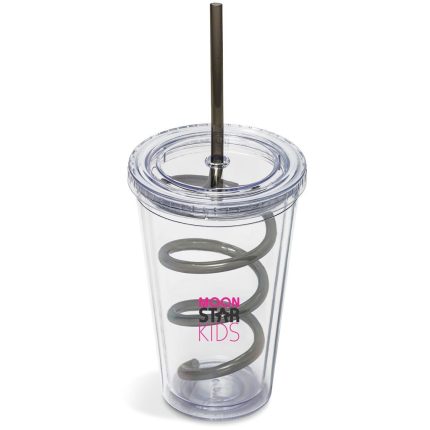 Brighten up your day with this fun tumbler! The spiraling twisty straw is designed to keep you cheerful throughout the year while the double-wall design keeps your drink cool for longer and reduces condensation on the outside of the tumbler.