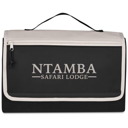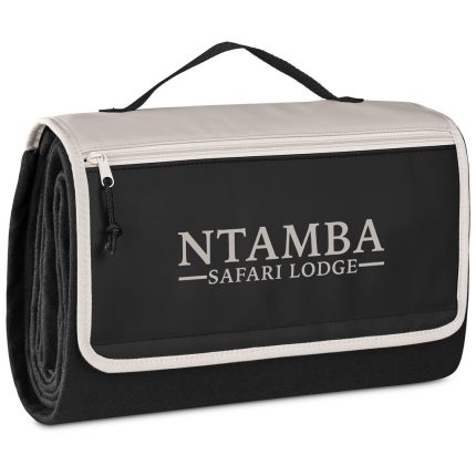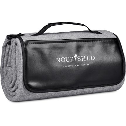 A compact fleece blanket with a water-resistant backing. It’s easy to fold up and carry, and features a prominent PU front pocket for effective branding of a logo or message.