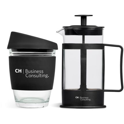 Make yourself a fresh cup of coffee with this glass coffee tumbler and plunger set.