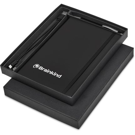 An aluminium bottle, a notebook and a plastic ball pen are neatly presented together in a gift box. This set is suitable as a client gift, or for staff and onboarding of new members to the team. A pre-packaged gift set not only looks impressive, but can also be a convenient and practical option when it comes to transport and delivery.