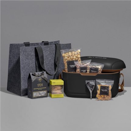 The Yatta range of hampers is expertly crafted to provide a delightful experience with a curated selection of premium items. Elegantly presented in a luxury 12L cooler box. This hamper is further encased in a large size durable Dark Grey RPET felt gift bag.
