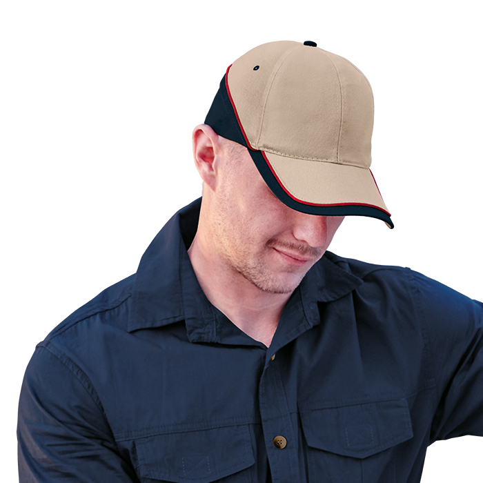 - Contrast sandwich peak, eyelets and buttons