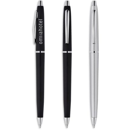An affordable pen that writes well and comes in 9 fun colours with silver accents.