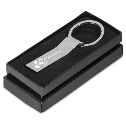 This metal bottle opener keyholder has plenty of space on the top side for elegant branding of your logo or message.