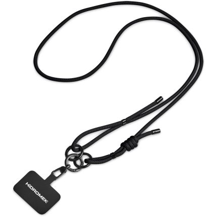 Phone straps have become a popular way to not only carry a phone, but also to prevent dropping or misplacing it. This universal version, fits between a phone and a phone case, with a loop popping out of the charger opening of the case. The loop is then attached to the clip of the adjustable cord. By adjusting the length of the cord, you can choose to wear it as a crossbody, a shoulder strap or a neck strap.