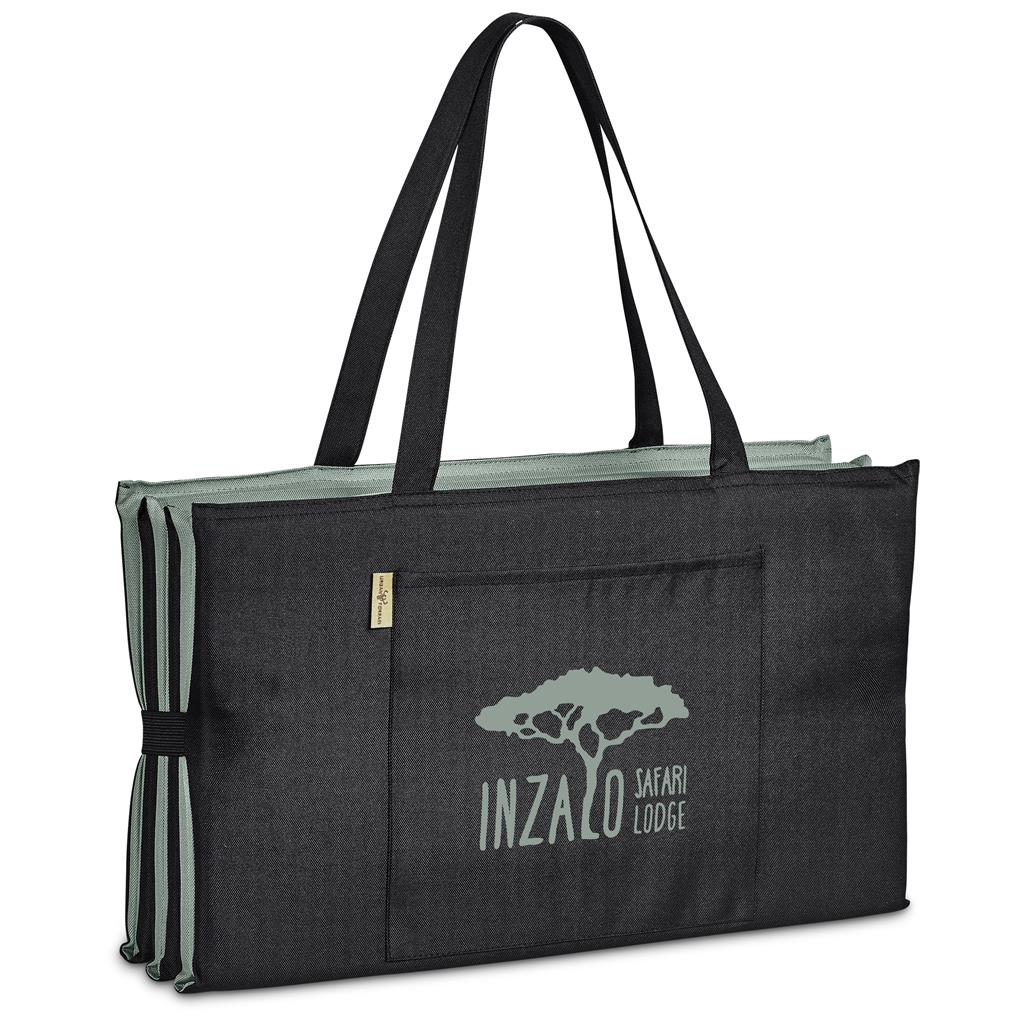 A compact fleece blanket with a water-resistant backing. It’s easy to fold up and carry, and features a prominent PU front pocket for effective branding of a logo or message.