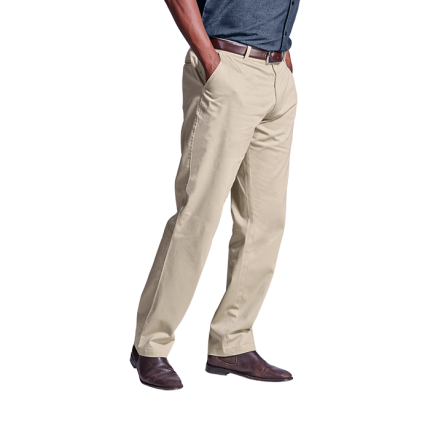 - Relaxed flat front chino styling