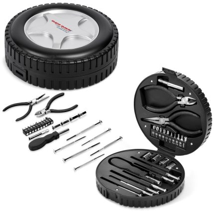 Get your next promotional event rolling with this DIY tyre-shaped tool-set. Includes assorted bits , assorted sockets , bit extension , long-nosed pliers ,6 x precision screwdrivers , side cutters, socket.