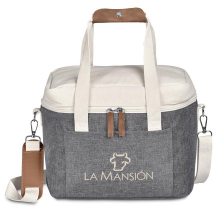 The combination of materials of this cooler bag makes it both blend in and stand out in a natural, outdoor setting.