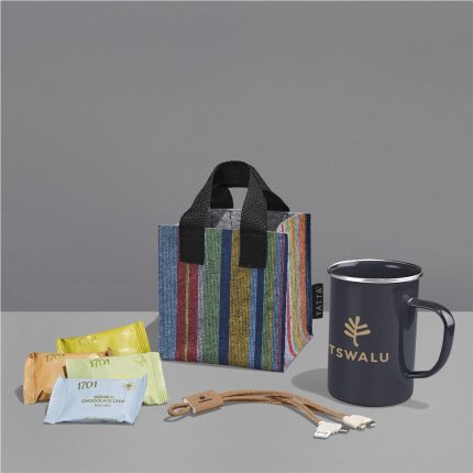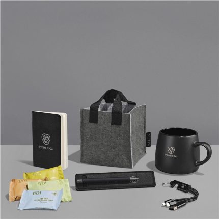 The Yatta range of hampers is expertly crafted to provide a delightful experience with a curated selection of premium items and edible treats. The contents are elegantly presented in a Yatta sublimated RPET felt mini gift bag.