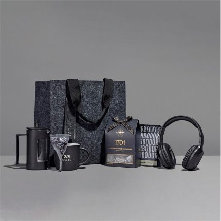 The Yatta range of hampers is expertly crafted to provide a delightful experience with a curated selection of premium items and edible treats. Elegantly presented in a Yatta drawstring bag, this hamper is further encased in a durable Dark Grey RPET felt gift bag.